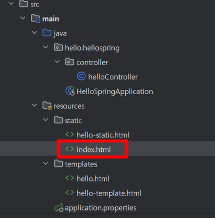 4) 만약 없으면 resources/static/hello-static.html 을 찾는다. -> 있으니까 hello-static.html을 사용자에게 반환해준다.