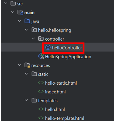 1. src/main/java/hello.hellospring/controller 하위에 helloController.java 을 생성한다.