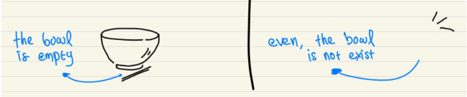 null : "이건 빈 값이 들어있어." -> 개발자가 의도적으로 값이 없음을 명시