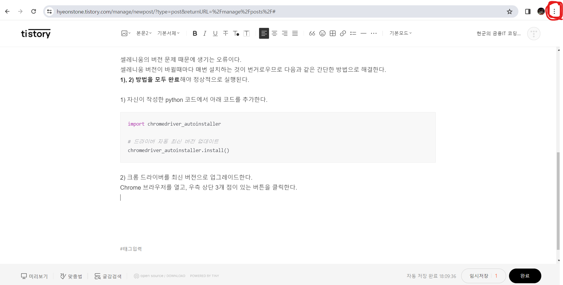 2) 크롬 드라이버를 최신 버전으로 업그레이드한다.